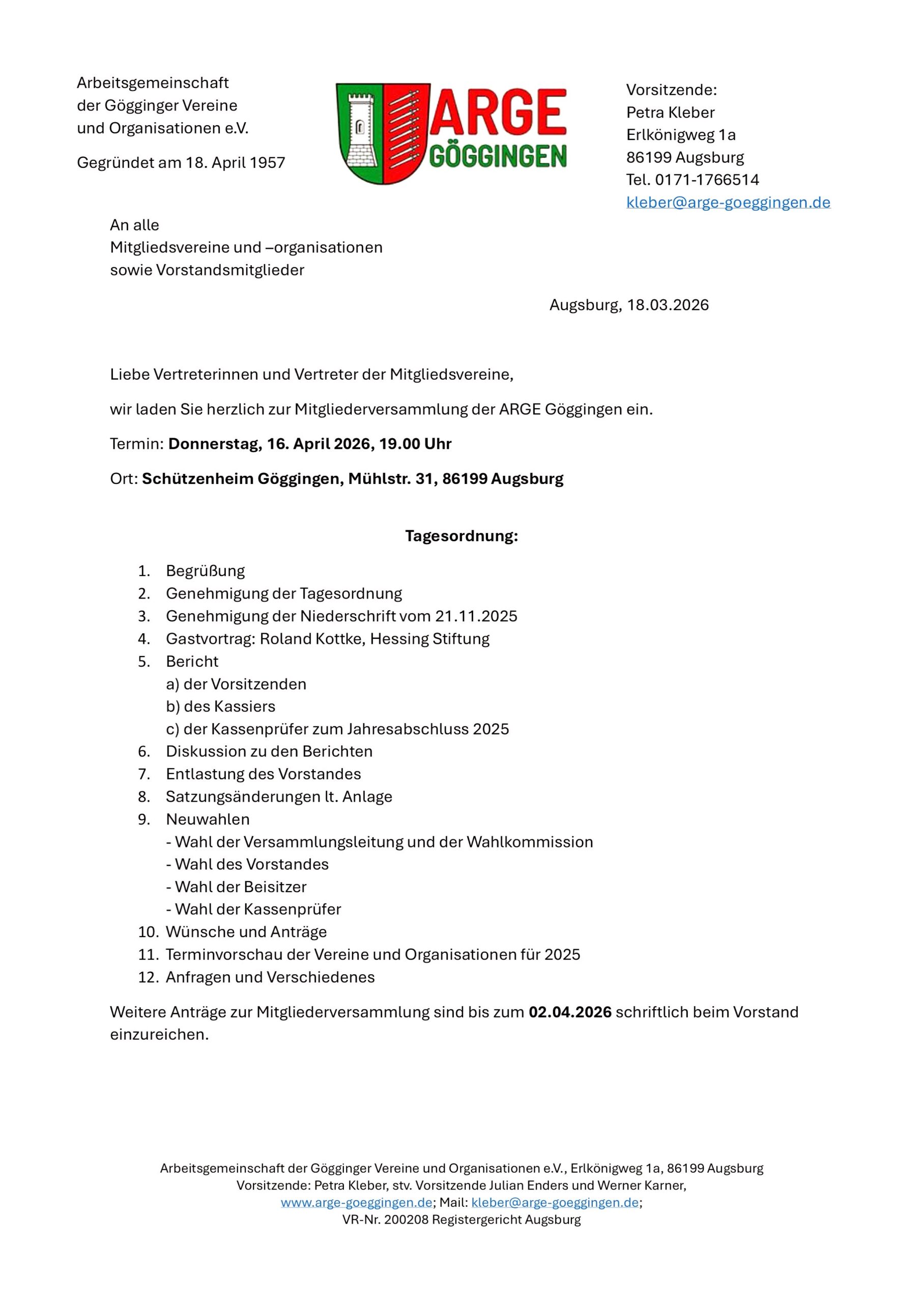 Mitgliederversammlung der ARGE Göggingen am 16. April 2026