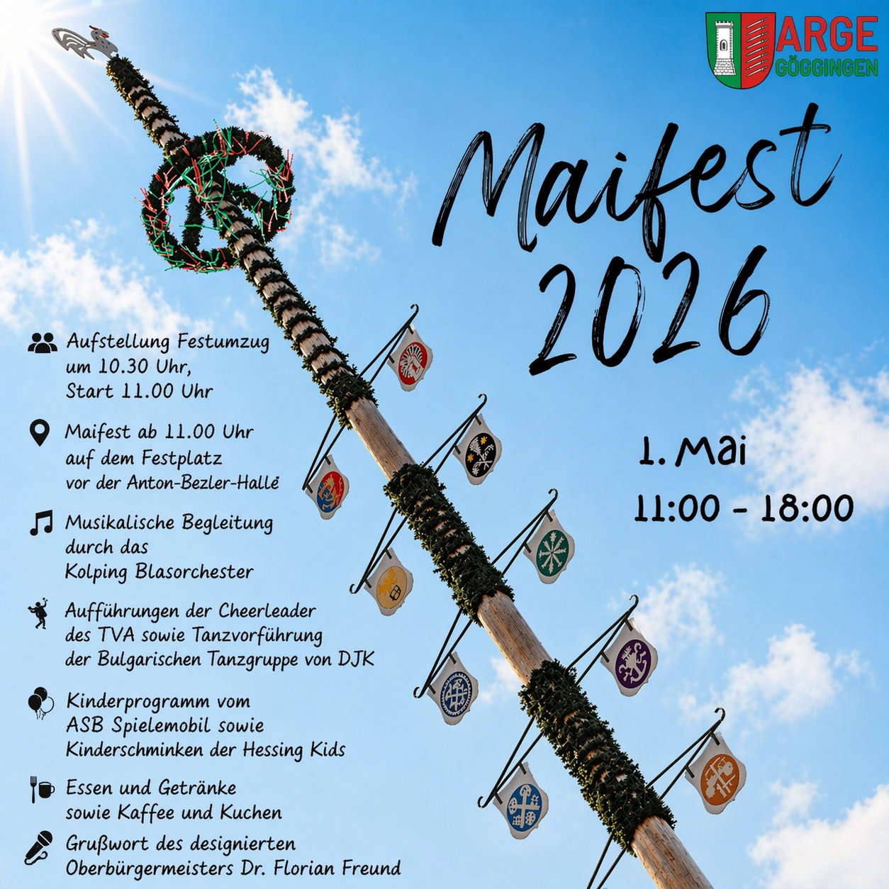Am 1. Mai ist es wieder soweit – die ARGE Göggingen lädt herzlich zum traditionellen Maifest ein! Freuen Sie sich